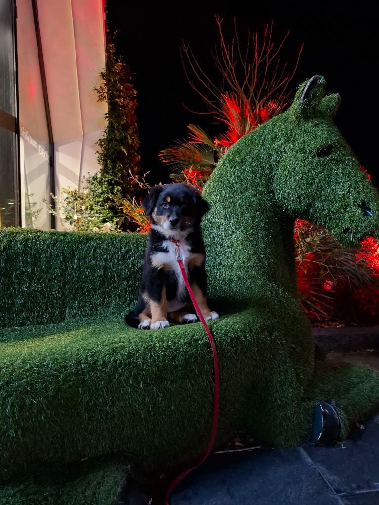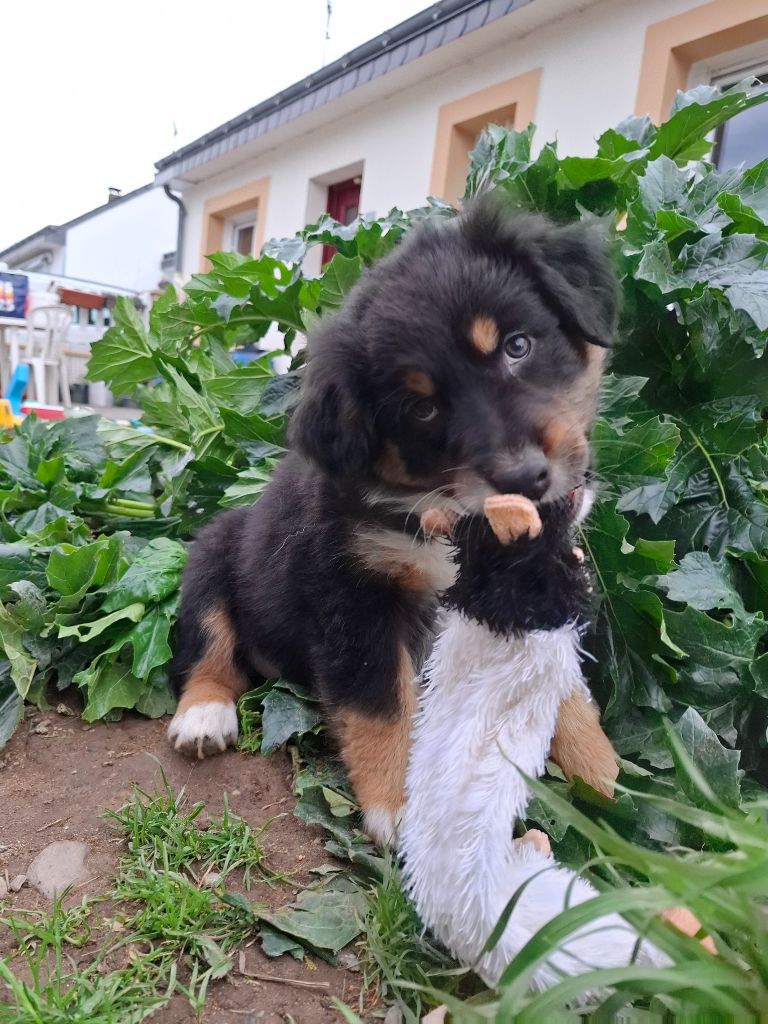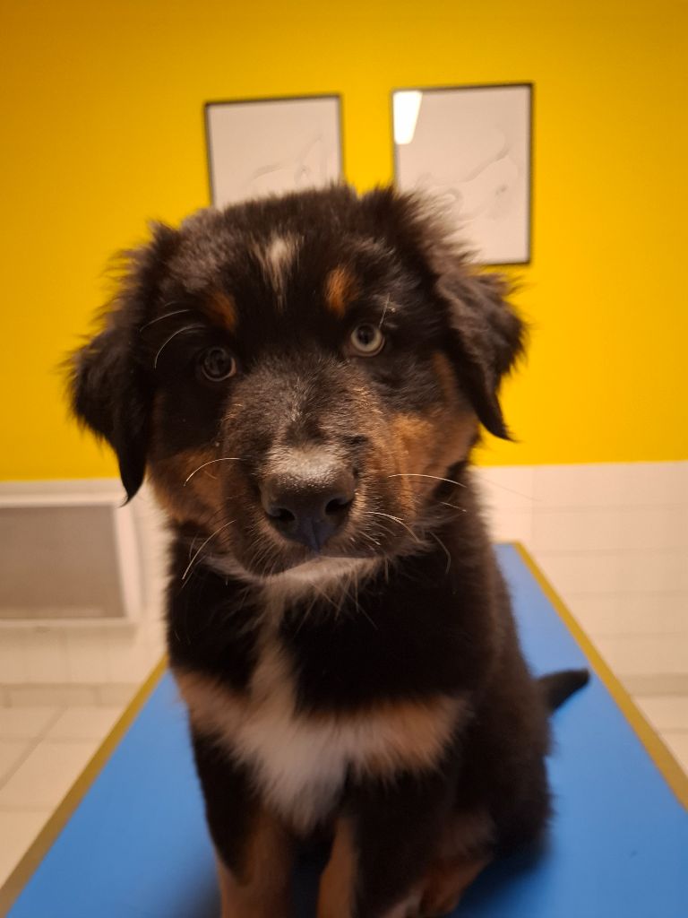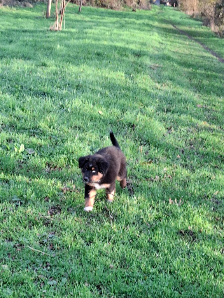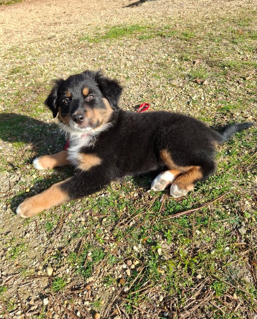 Petit mâle très câlin et n'a peur de rien, très curieux, joueur. Il commence à rapporter sa balle...